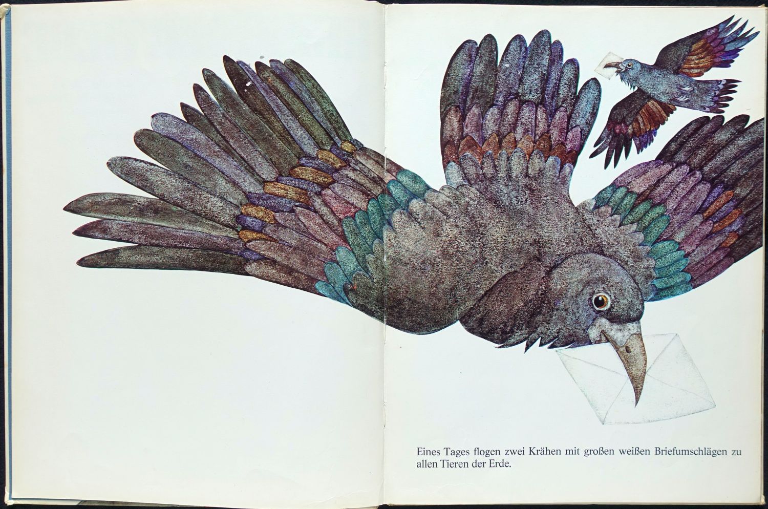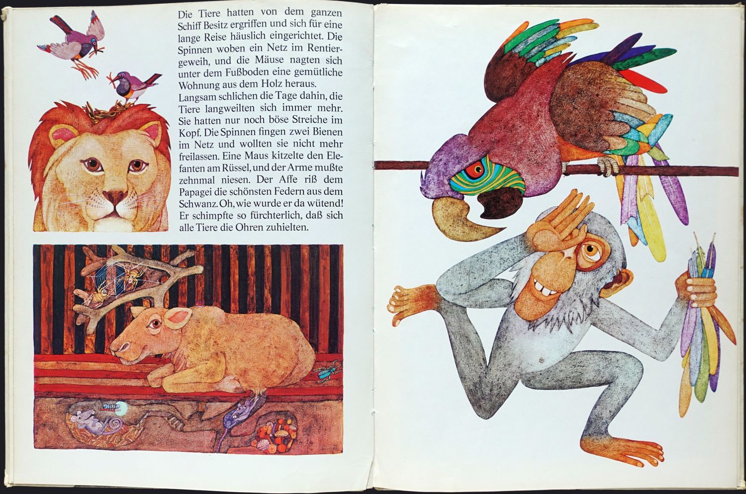 Etienne Delessert und Eleonore Schmid: Illustration für "Die lange Reise der Tiere" (Büchler-Verlag, 1967).