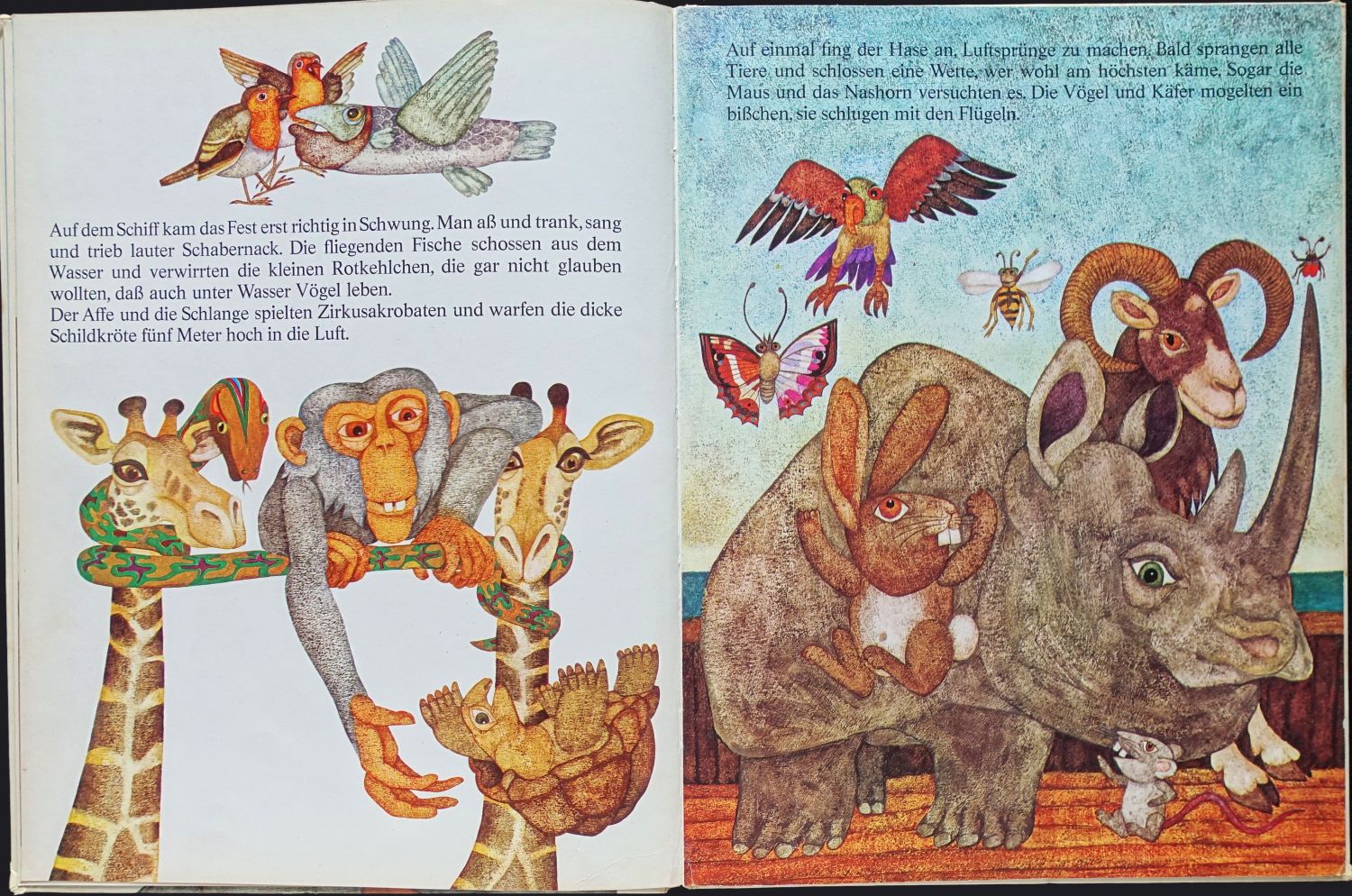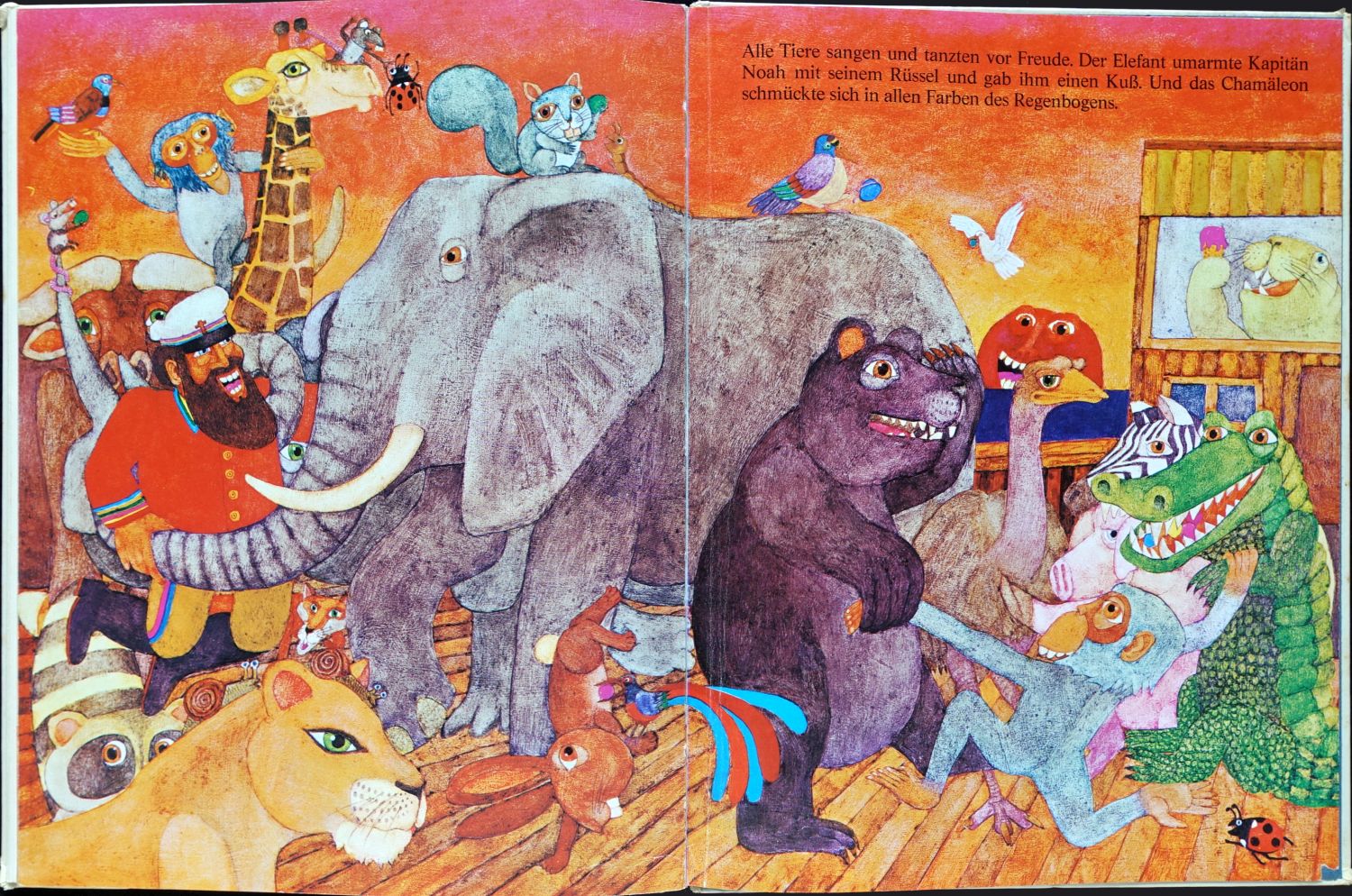 Die lange Reise der Tiere (Büchler-Verlag, 1967. Illustrationen und Text: Etienne Delessert in zusammenarbeit mit Eleonore Schmid). Titel der amerikanischen Originalausgabe von 1967: "The endless Party".