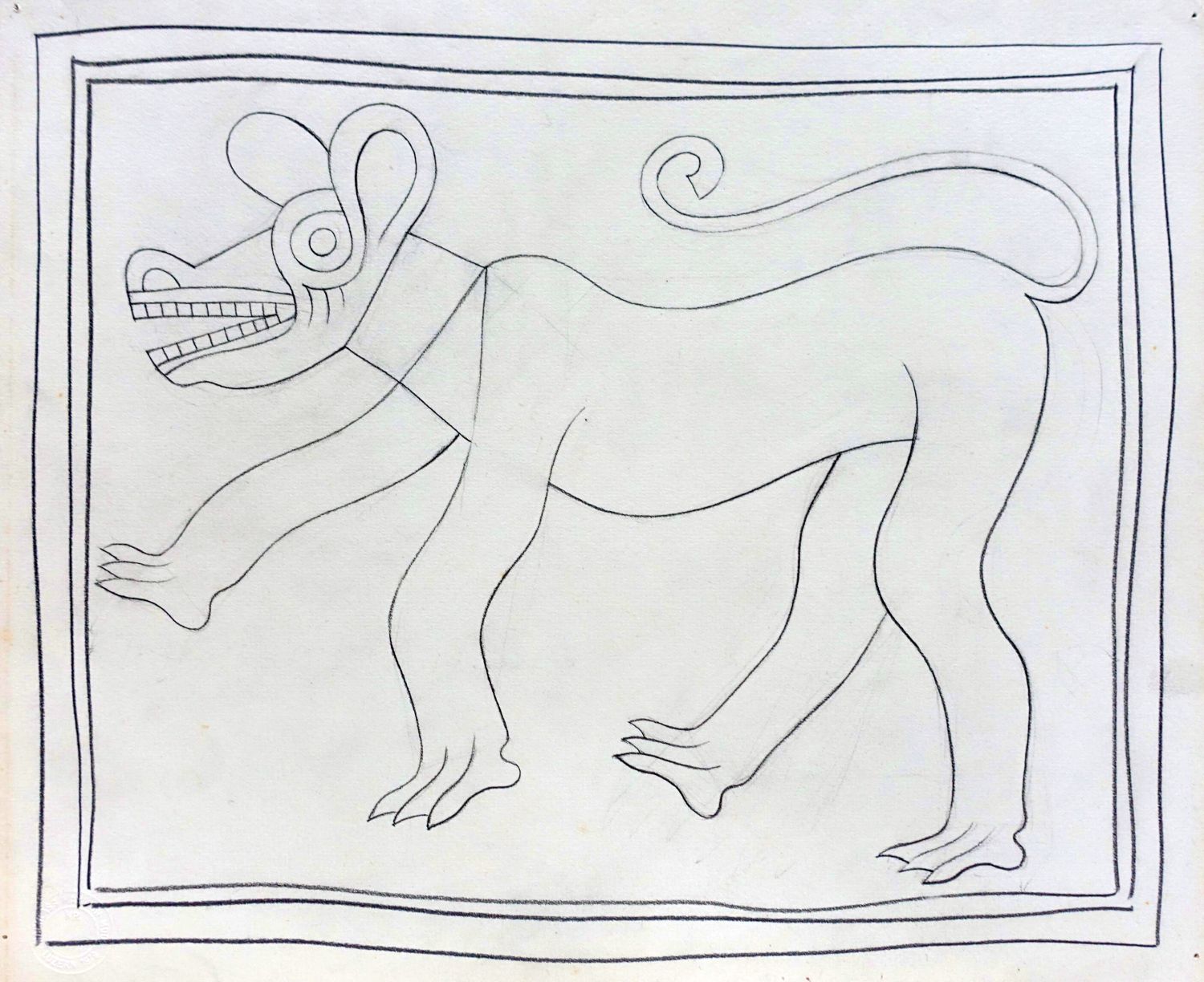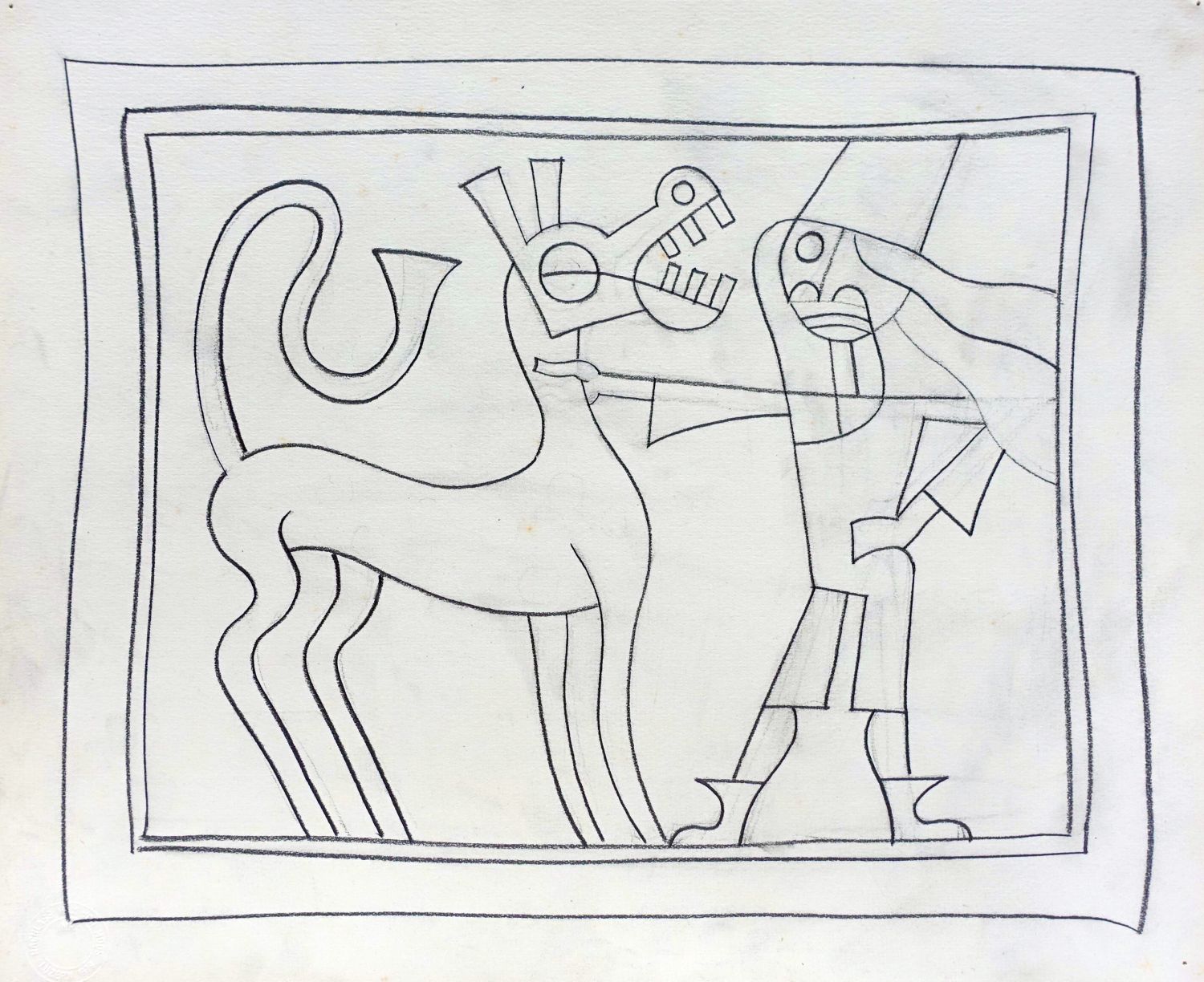 Verso auf dem Malkarton vom Künstler in schwarzem Stift bezeichnet "Fabeltier / Um 1935 / Max von Moos". Datierung in den letzten Lebensjahren angebracht. Etikett Kunstmuseum Luzern Inv. Nr. L86.5x.