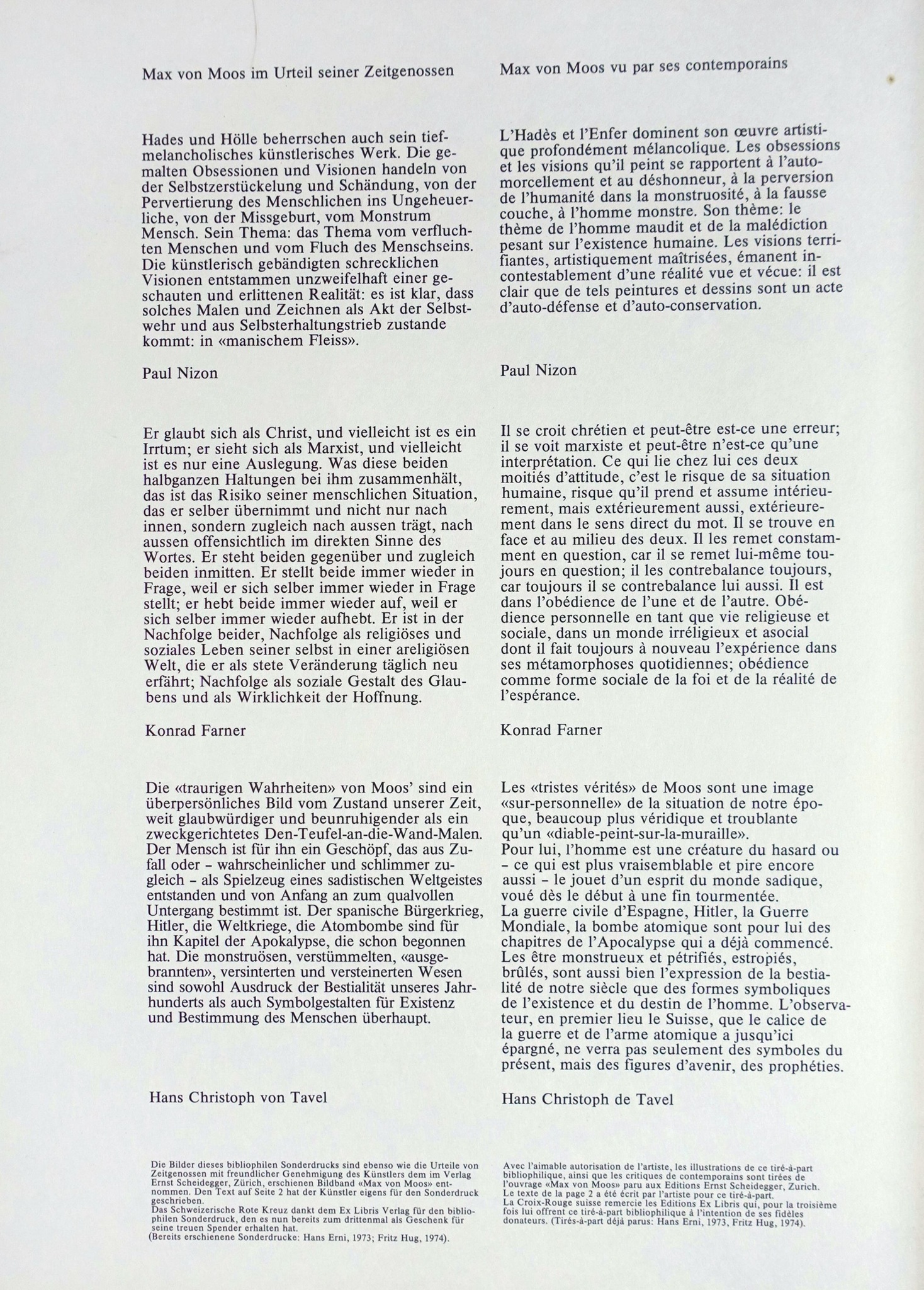 Max von Moos. Bibliophiler Sonderdruck des Schweizerischen Roten Kreuzes (nicht datiert, um 1975)