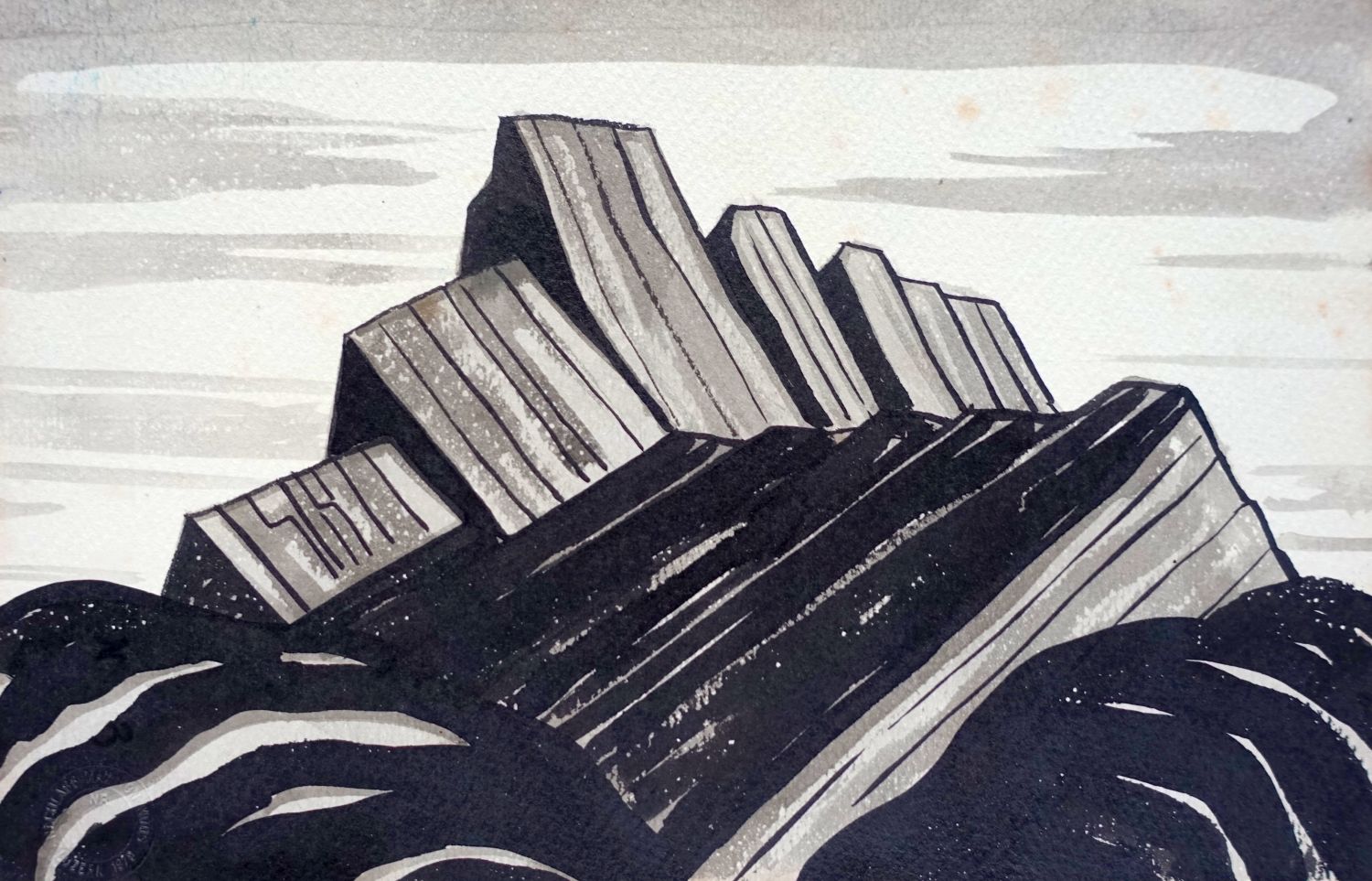 Technik: Tusche und Tempera auf Karton aufgezogen.