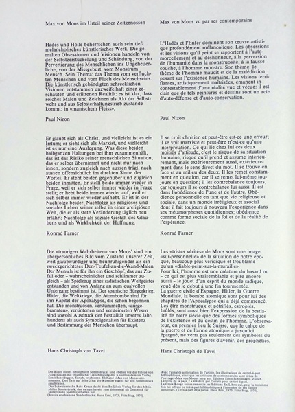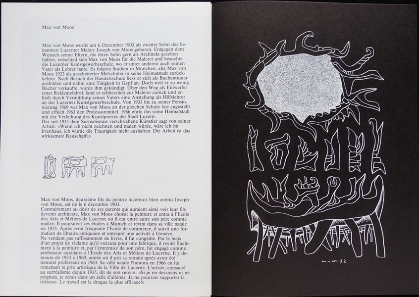 Diese Monographie von Peter Thali ist ein Wendepunkt in der Wahrnehmung des Werks von Max von Moos. Vor 1974 gab es bereits wohlwollende Kritiken und Solo-Ausstellungen, doch erst dieses grosse und in zeitloser Schlichtheit gestaltete Buch verschaffte Max von Moos in einer breiteren Öffentlichkeit die verdiente Aufmerksamkeit. Unter Enthusiasten nur "Thali" genannt.