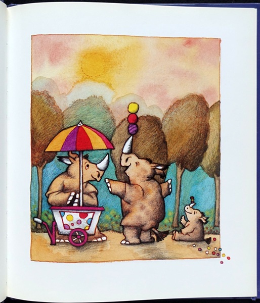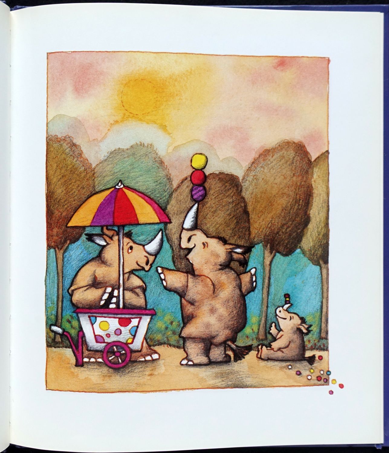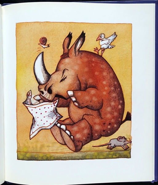 Andreas Röckener: Illustration für "Das Nashorn geht ganz leise..." von Inge Meyer-Dietrich, Anrich Verlag, 1992.