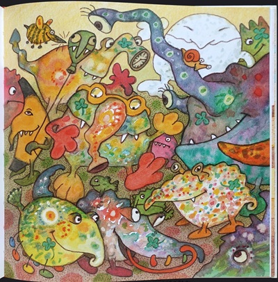 Bemerkungen: Original des Bildes von S. 19 des zauberhaften kleinen Bilderbuchs "Der Zauberbüffel". Text und Illustrationen von Andreas Röckener, Ravensburger Verlag, 1990.