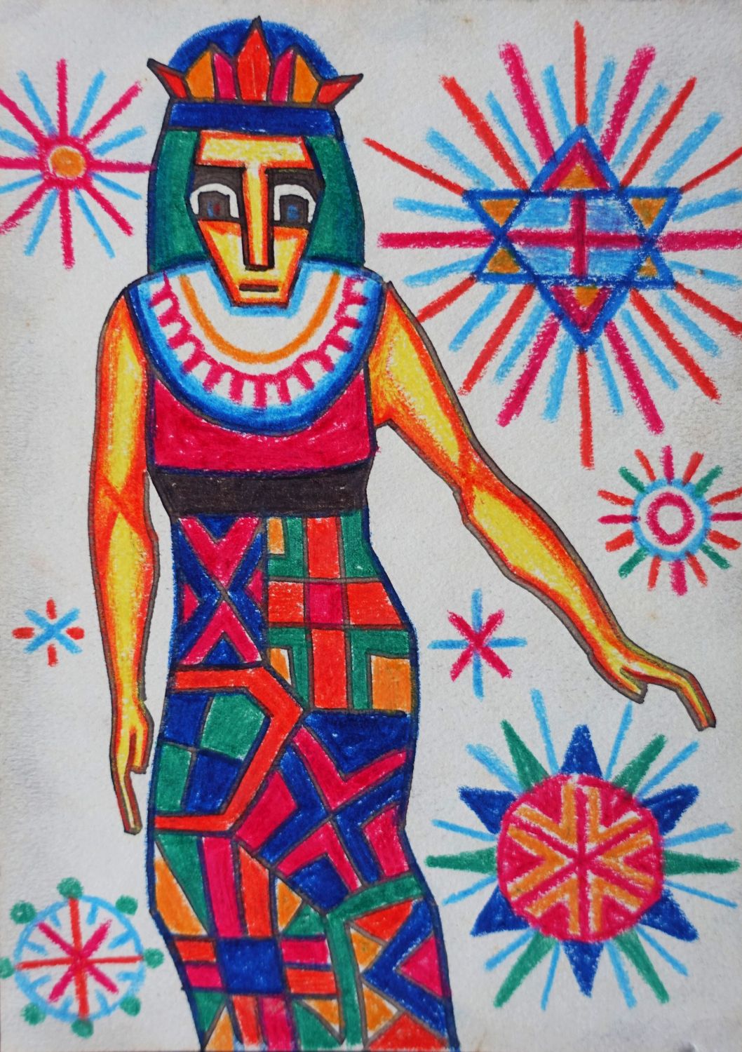 Technik: Tempera und Ölkreide auf Papier