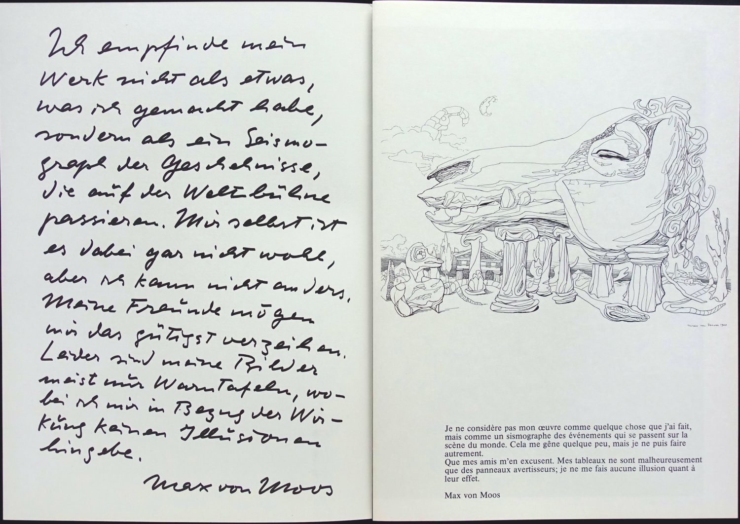 Kaum jemand war Max von Moos so nah wie Peter Thali, welcher mit der Herausgabe der ersten Monographie im Jahr 1974 einen Meilenstein in der Wahrnehmung der Öffentlichkeit von Max von Moos als herausragenden Surrealisten geschaffen hat.